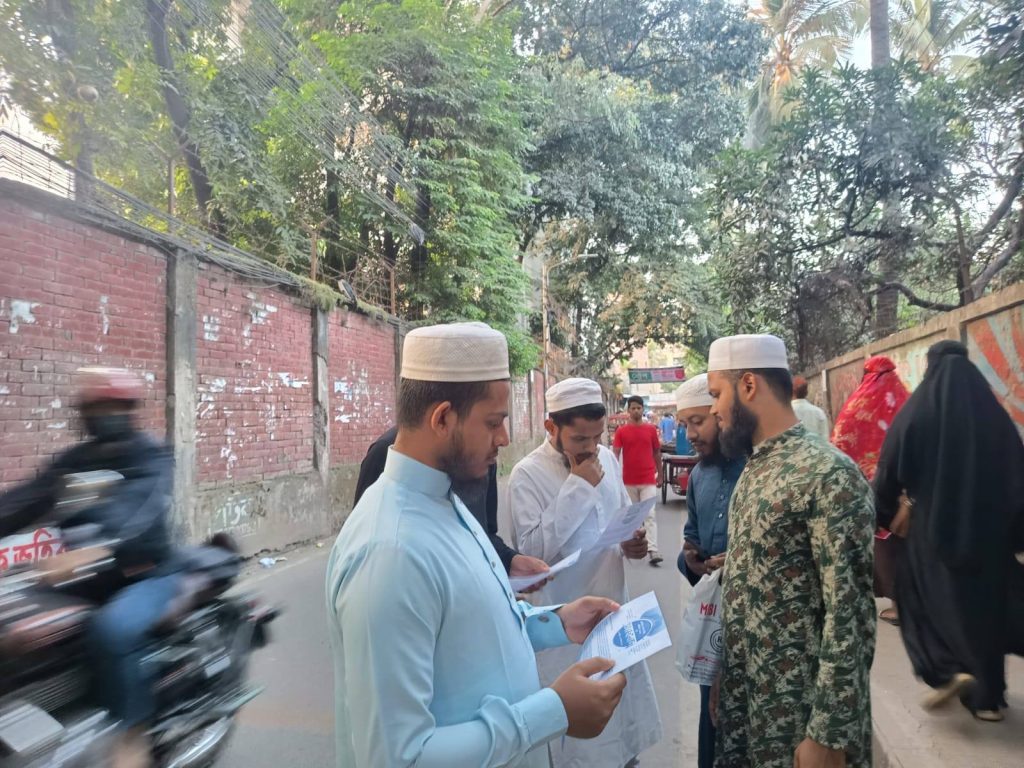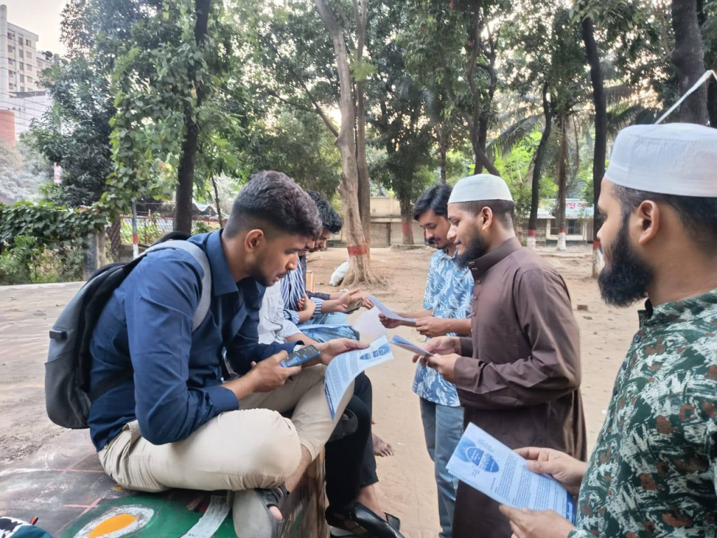 প্রাথমিক সদস্য সংগ্রহ অভিযান ২০২৫ এর প্রথম দিনে, কেন্দ্রীয় কর্মসূচি বাস্তবায়নের লক্ষ্যে শিক্ষার্থীদের মাঝে লিফলেট বিতরণ করে ঢাকা মহানগরী উত্তর শাখা।
